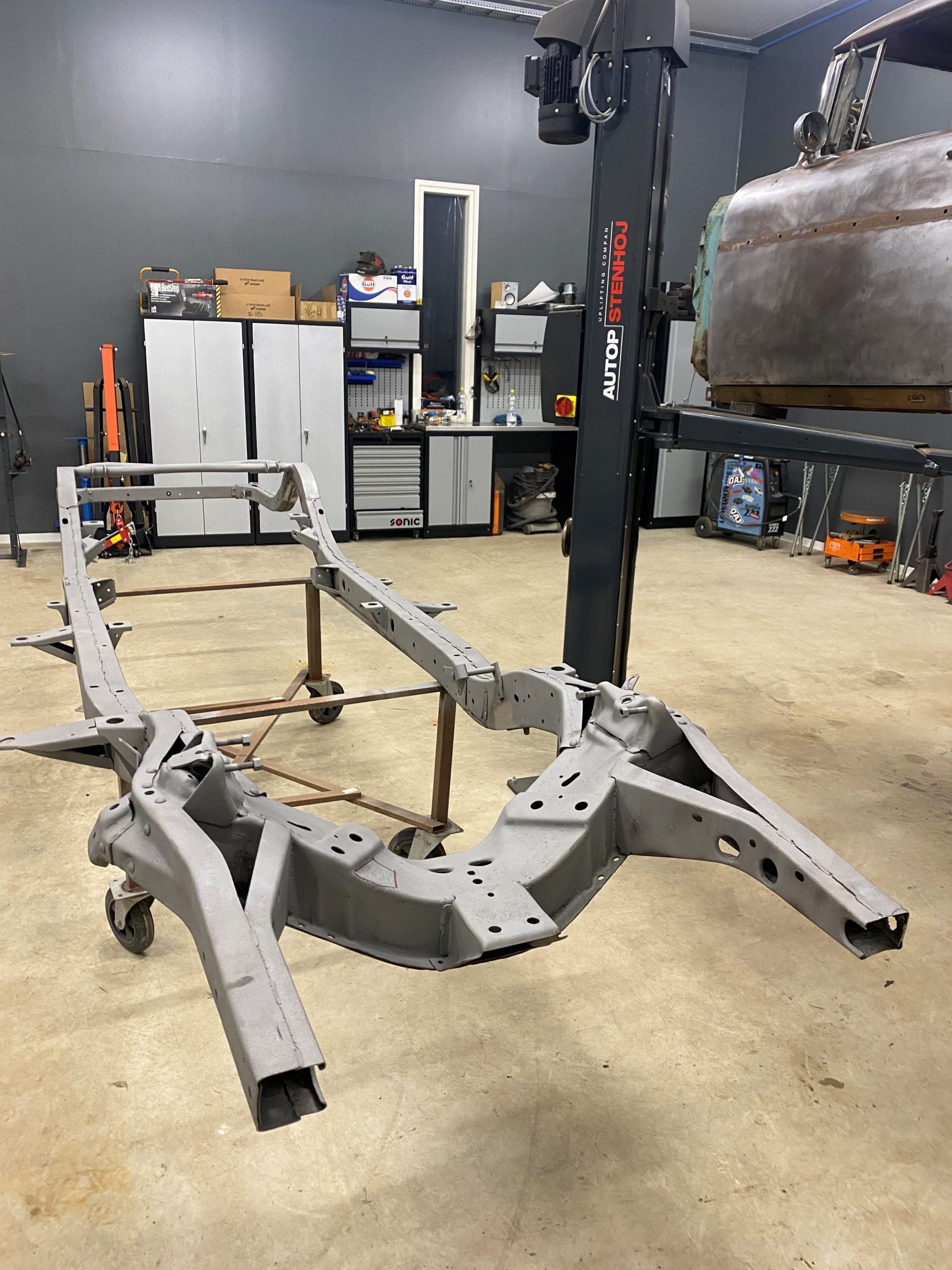 Bel Air runko. Ajatelkaa, auton runko on 65-vuotias! Ja todella hyvässä kunnossa. Muutama kohta paljastui hiekkapuhalluksen jälkeen jotka piti hitsata mutta muuten runko on aivan mielettömän hyvässä kunnossa.